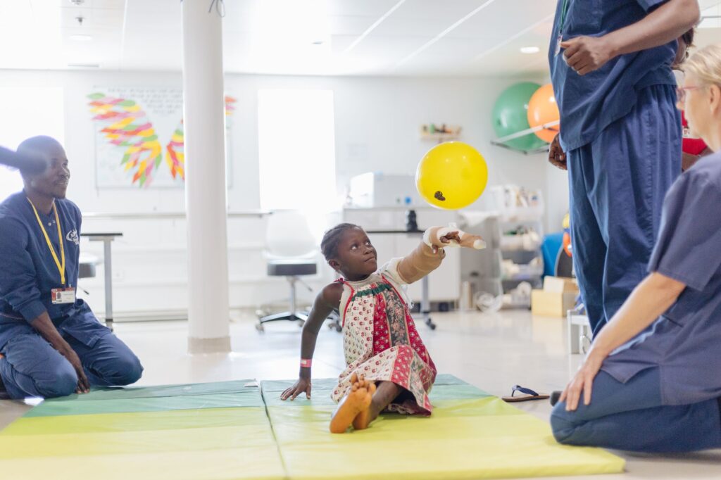 A reabilitação de Musu consistiu no uso de talas termoplásticas para esticar as articulações dos braços e evitar que o tecido cicatricial voltasse a contrair-se. A sua terapia também incorporava atividades funcionais, habilmente disfarçadas de brincadeira.