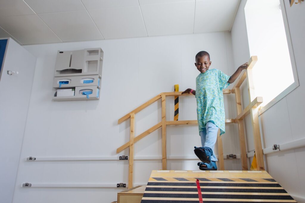 A reabilitação de Abubakarr durou duas semanas e focou-se em ajudá-lo a recuperar força, equilíbrio e mobilidade através de exercícios específicos e sessões de terapia lúdica.