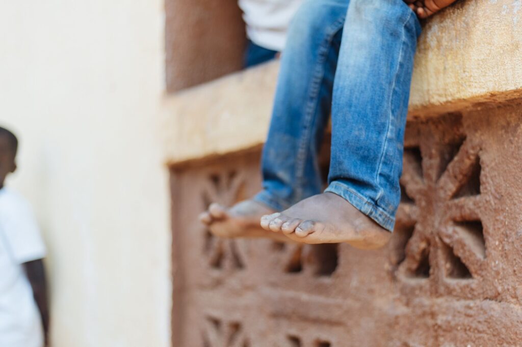 Para o jovem Abubakarr, os sapatos eram uma recordação dolorosa de que era diferente. Ver os seus amigos a apertar os atacadores dos sapatos muitas vezes fazia-o chorar. «Quando os vê com sapatos, vem ter comigo a chorar», partilhou Adama. «Diz-me: ‘Avó, olha para todos os meus colegas com sapatos, mas eu não posso’.» Ela conseguia ver o peso que ele carregava sobre os seus pequenos ombros. «Ele não estava feliz. Era diferente entre os seus colegas, o que levava a que algumas crianças o provocassem.»