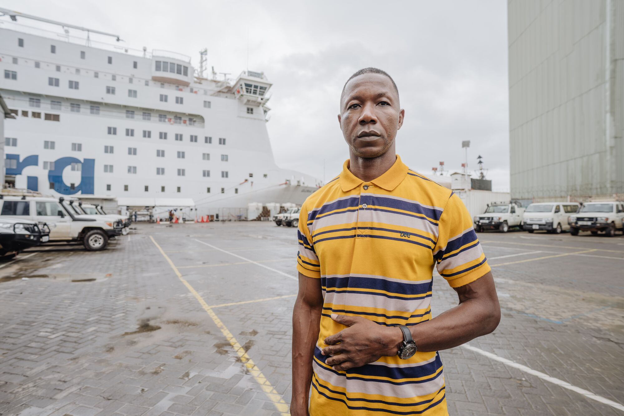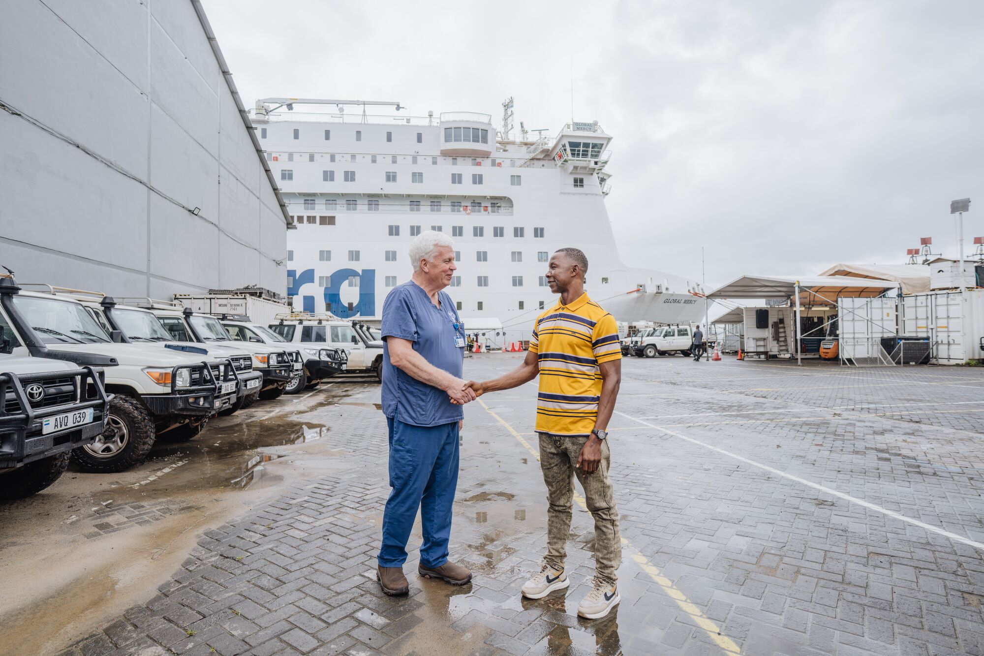 O Dr. Zwiacher cumprimentou Mohamed no cais um dia antes da cirurgia. Apertaram as mãos e Mohamed sorriu, entusiasmado por finalmente conhecer o cirurgião que realizaria a operação a bordo do Global Mercy.